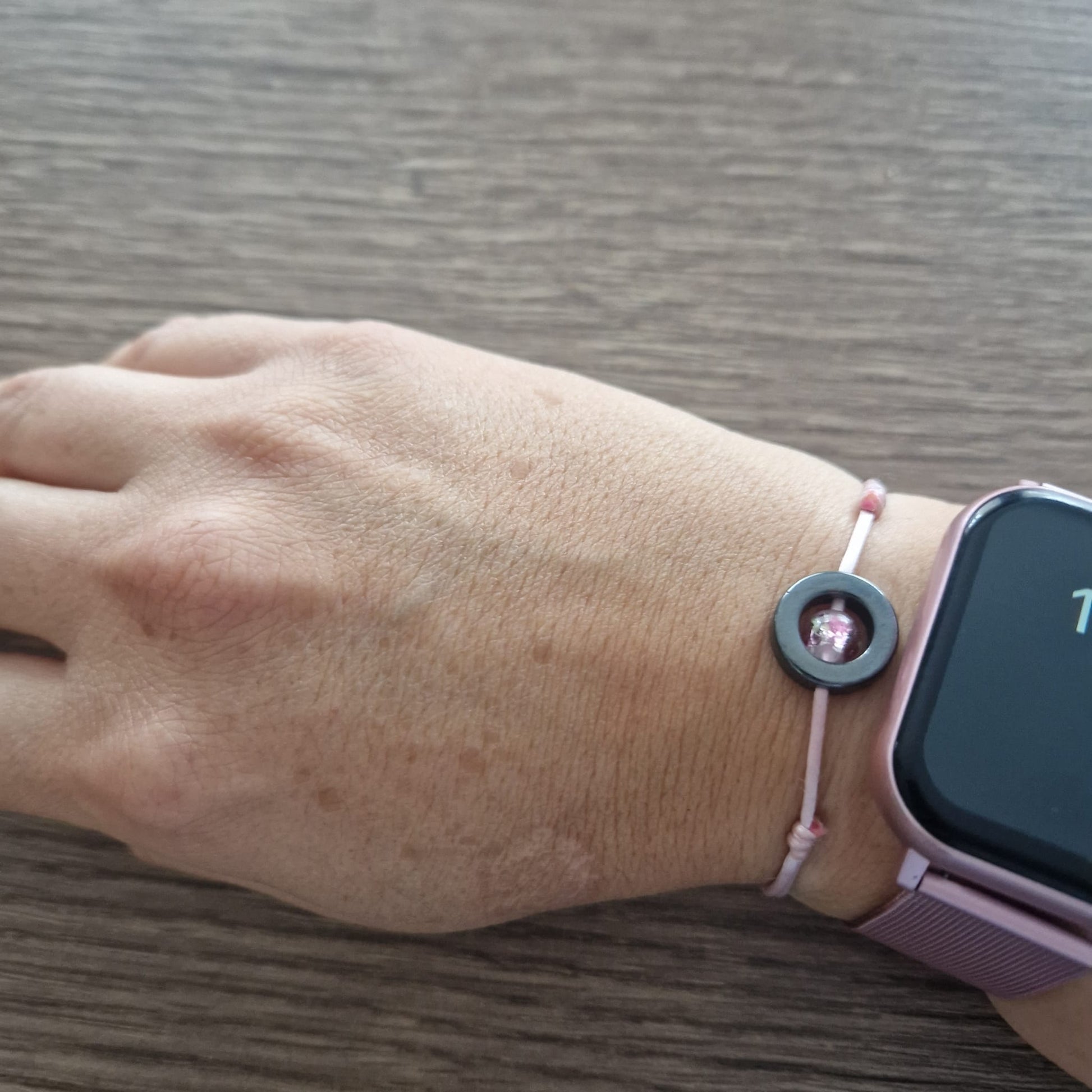Le bracelet Mimosa est ajustable et s’adapte à tous les poignets grâce à son cordon souple et résistant.